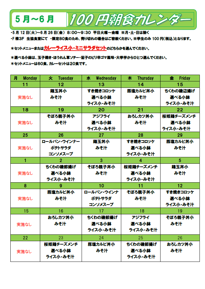 2026年度前期の「100円朝食」始まります!